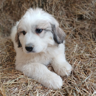 We have chosen to use Great Pyrenees dogs as our LGDs. They are generally very gentle with livestock, and are friendly, sweet dogs. We started with one pair (Artemis and Achilles) and have bred and kept pairs in an effort to be able to have various pens and fields protected while keeping in mind that these large breed dogs don't typically make it past 10 years. Our youngest GP, Demeter, had her first litter in January. Five beautiful puppies! They are now fully weaned, have had time with the sheep and goats as well as the chickens and 3 females are ready to find their new homes. As adorable as they are, these are working dogs. They bark all night, are on alert 24/7 and love being outdoors. They will make good livestock protection dogs. It always amazes me how their personalities start showing so early. "Badger" is independent and will be a fierce hunter, like her great-grandmother, but will probably do best with a partner dog. "Tanner" likes to be off by herself and will be the most likely pup to be OK working as a single LGD (most of our GPs prefer to be in pairs). "Charlie" is the cuddliest and will probably be good in a hybrid situation, doubling as a pet during the day and an LGD at night.
